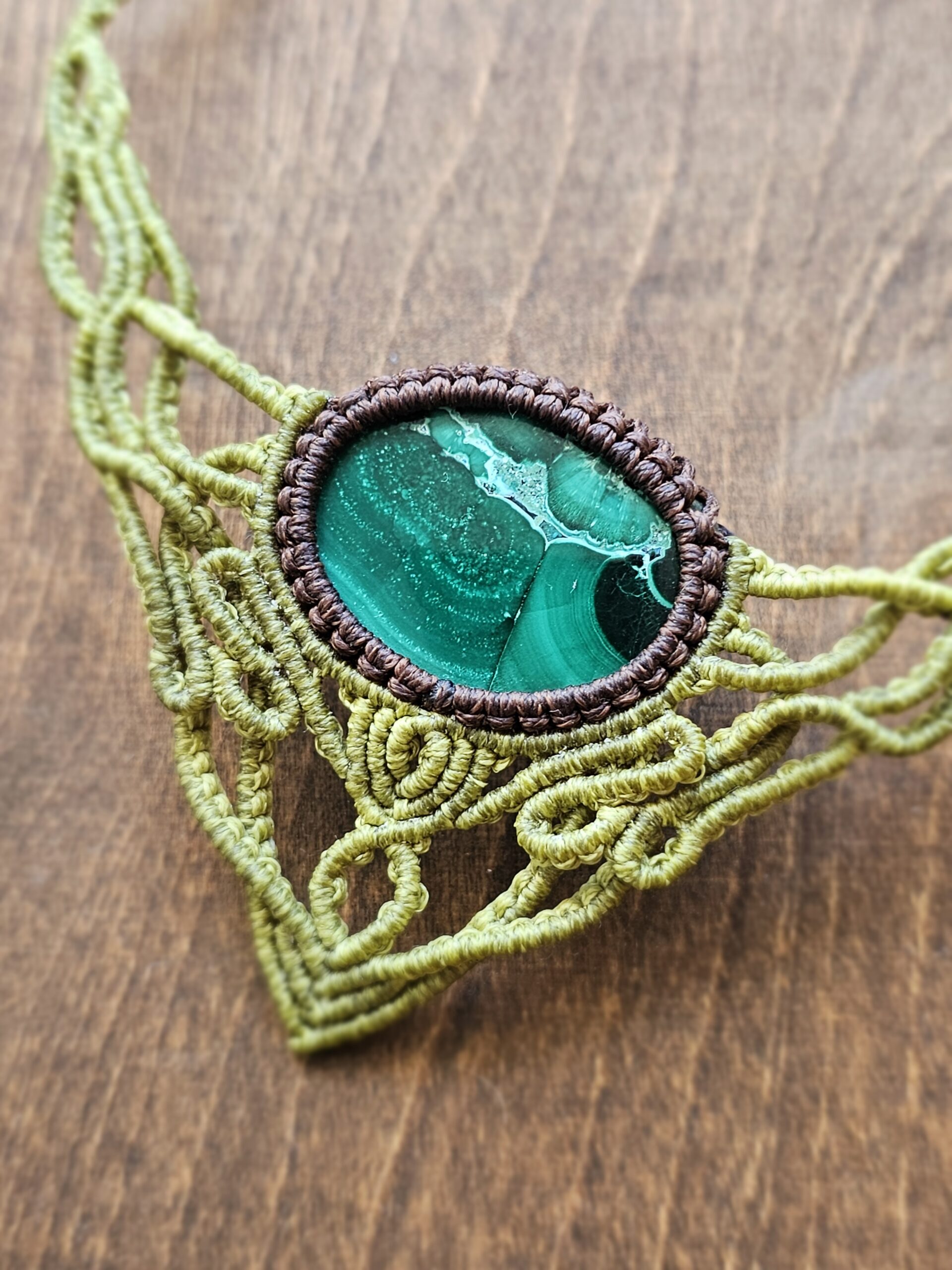 Kolia z Serii “Śpiew Wiosny” z malachitem – micromacrama