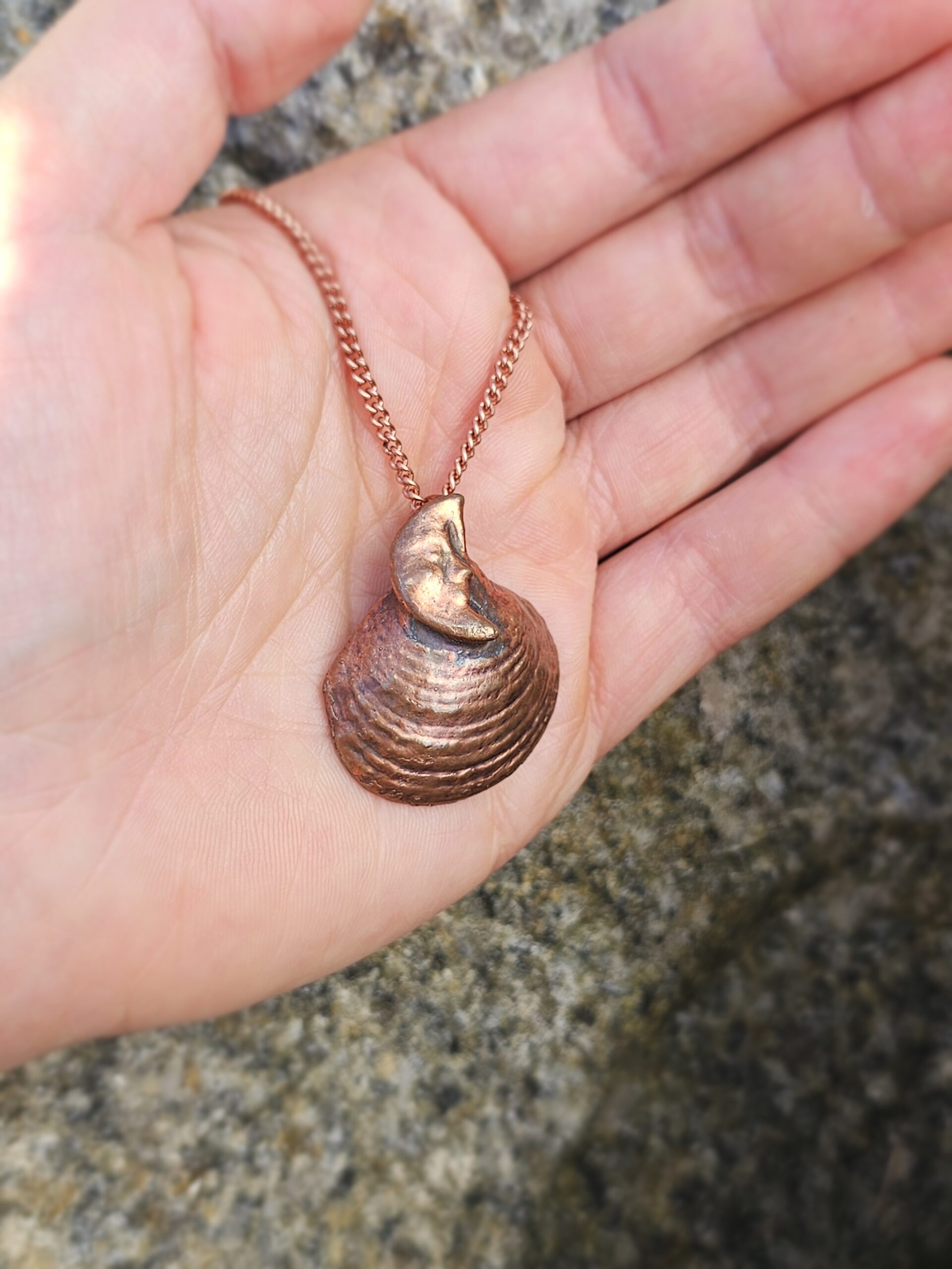 Naszyjnik z księżycową muszelką pokrytą miedzią