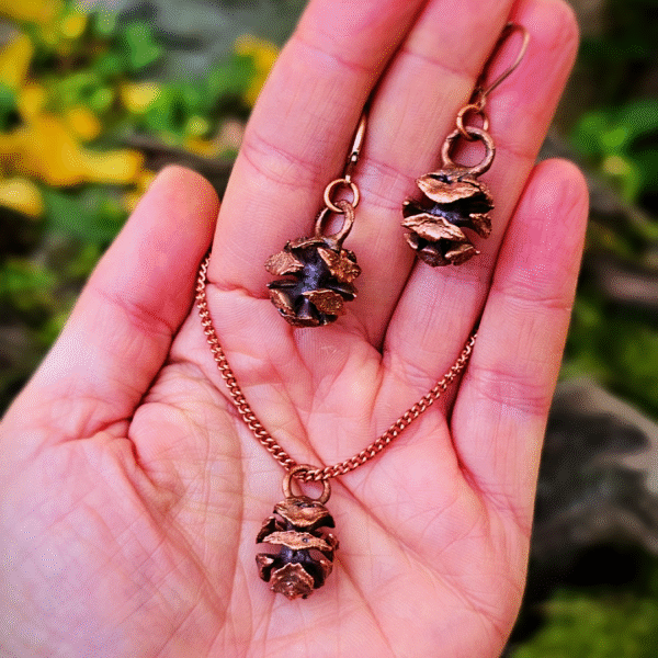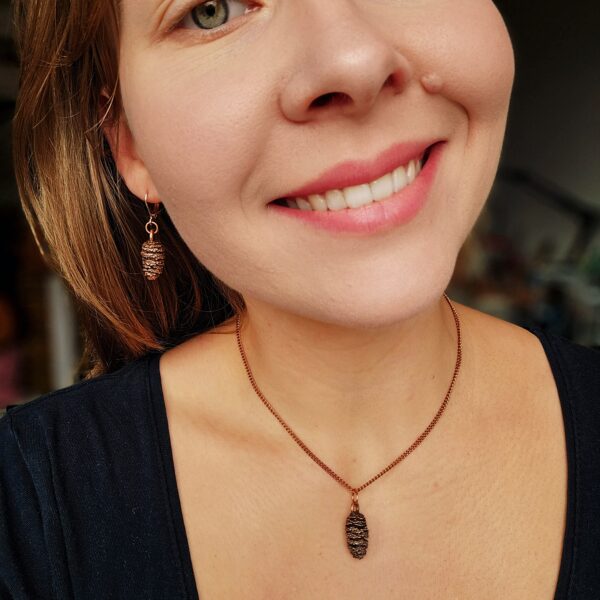Komplet biżuterii miedzianej – szyszki czarnej olchy